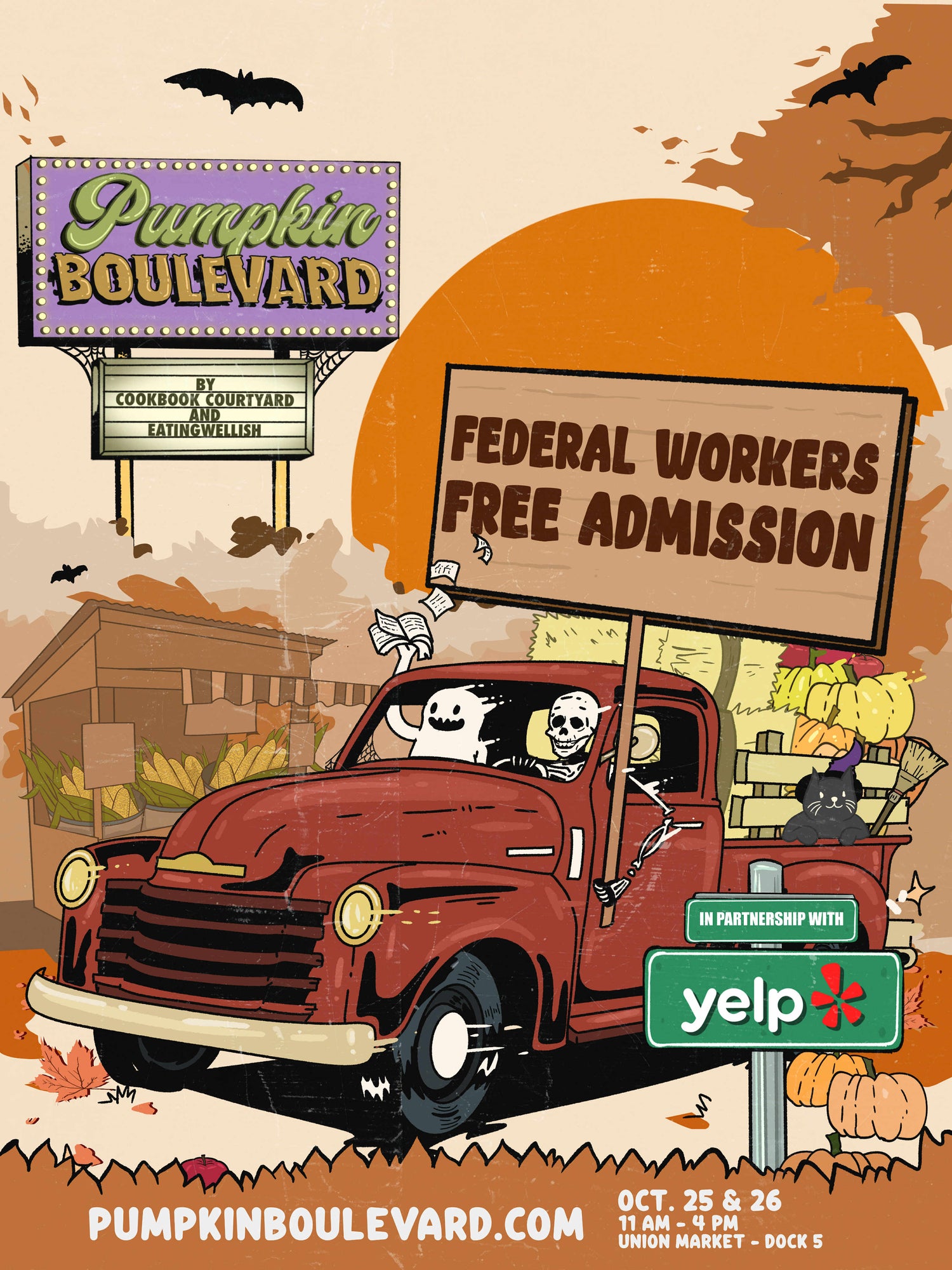 DC! WE ARE HERE FOR YOU! All federal workers get FREE admission to Pumpkin Boulevard for both days! Just show your government or contractor ID at check-in. Come hang out, grab some treats, score a goodie bag, and celebrate Halloween with us!